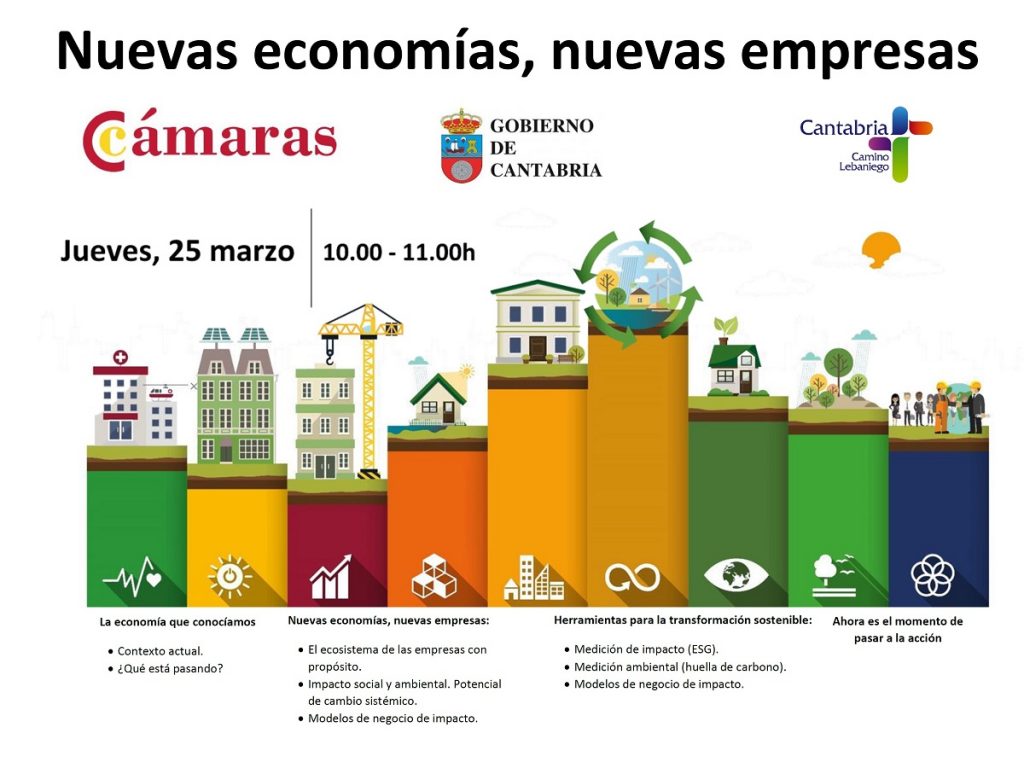 El Gobierno de Cantabria, a través de la Dirección General de Trabajo, en colaboración con las Cámaras de Comercio, desarrolla esta jornada sobre Nuevas Economías, Nuevas Empresas, en las que se trabajará los nuevos modelos de organizaciones en los que la responsabilidad cobra protagonismo a través del propósito corporativo. Aprenderemos cómo está cambiando el panorama económico y cómo a través de herramientas como la medición de impacto podemos desarrollar un cambio sistémico, el cambio que la sociedad está esperando.