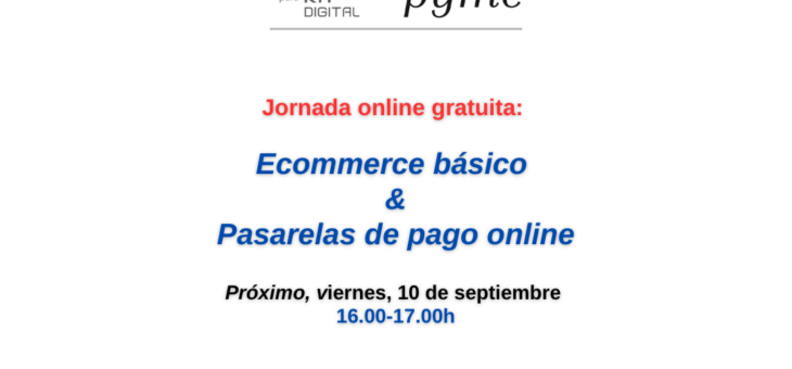 Fecha: Martes, 10 de Septiembre de 2024Horio: 16:00h-17.00hPonente: Marc Pomar, director de la Oficina AceleraPyme Ibiza y FormenteraFormato: online gratuito Este taller está diseñado para introducirte en el mundo del comercio electrónico y las pasarelas de pago online. Aprenderás los fundamentos para crear y gestionar una tienda online, desde la selección de plataformas ecommerce hasta la configuración deLeer más sobre Jornadas Oficina AceleraPyme Ibiza y Formentera: Evento online gratuito sobre Ecommerce básico y pasarelas de pago online[…]