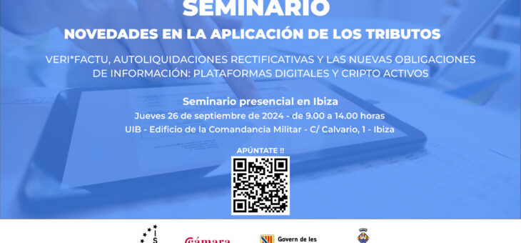 ¡No pierdas la oportunidad de asistir a este evento sobre Novedades en la Aplicación de los Tributos! Tendrá lugar el jueves, 26 de septiembre, de 9.00-14.00h en la UIB (Carrer del Calvari, 1, 07800 Eivissa, Illes Balears) y cuenta con un gran panel de expertos y con la colaboración del Govern Balear, Consell d´Evissa, laLeer más sobre Seminario sobre Novedades en la Aplicación de los Tributos![…]