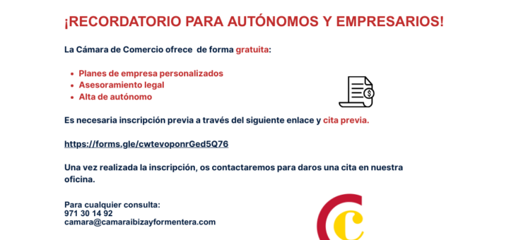 La Cámara de Comercio de Ibiza y Formentera informa de la apertura de la convocatoria oficial publicada en el BOIB núm. 59 de 10 de mayo de 2025 relativa a las ayudas para compensar los gastos de inicio de actividad por cuenta propia correspondientes a los años 2025, 2026 y 2027 en el ámbito territorialLeer más sobre Ayudas para el inicio de actividad por cuenta propia en Illes Balears (2025-2027)[…]