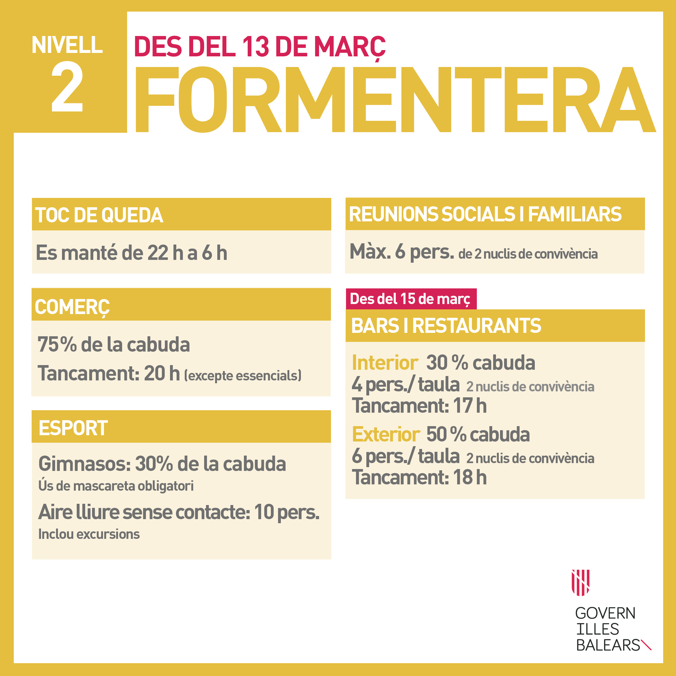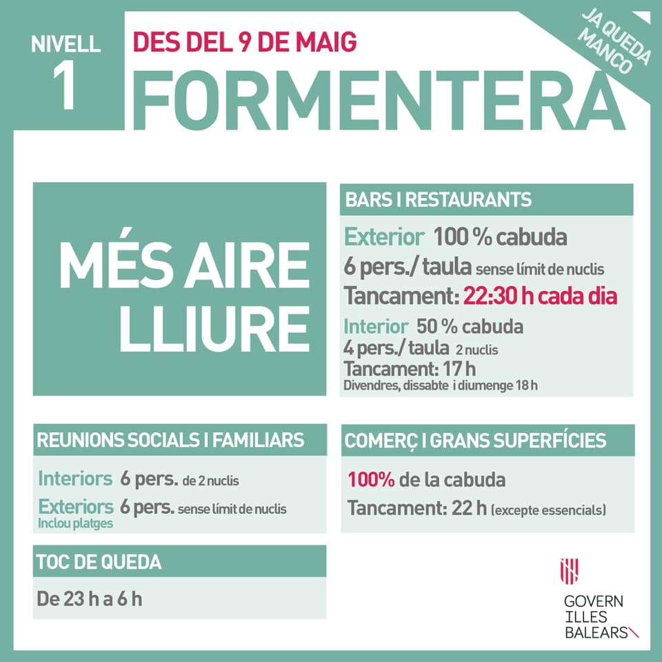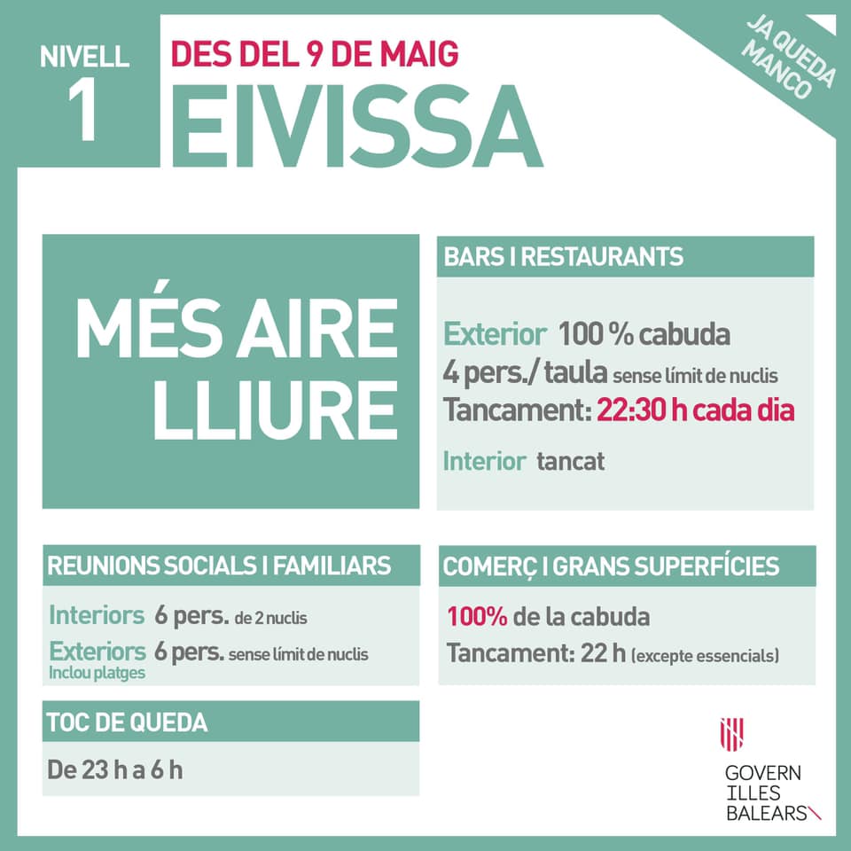 Boib 8 maig – Mesures sanitàries, nivells d´alerta, … per a la prevenció, contenció i coordinació per fer front a la Crisi Sanitària ocasionada per la COVID-19. (fins el 23 de maig de 2021). Cartell Eivissa. Cartell Formentera.