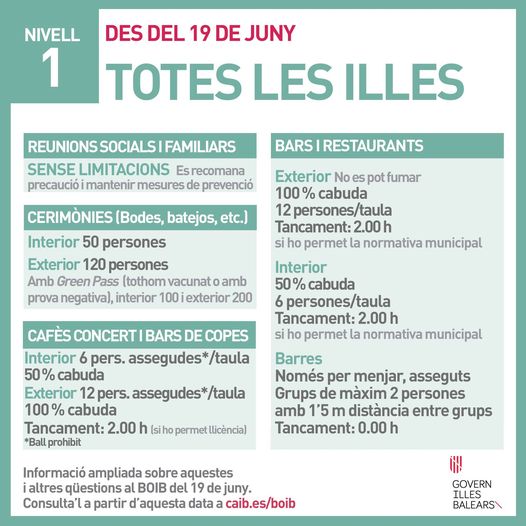 BOIB 7 Junio – Medidas de flexibilización, regulación y graduación de determinadas restricciones en las Islas Baleares en la Fase 3